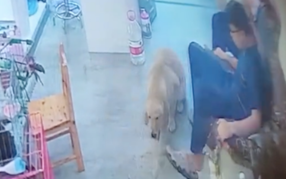 男子把脚给金毛闻了一下,狗:太臭了