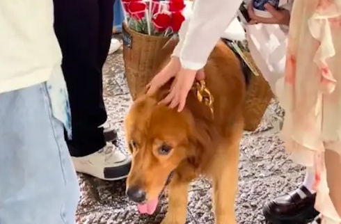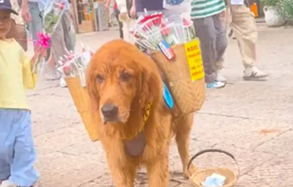 在云南大理。有很多人都在某个景区里,看到有一只金毛在人群中穿梭。而在金毛的身上,还有好多的鲜花,而且上面有文字说明。大概意思是说,大家可以自觉扫码付钱卖花!所以说金毛的主人是让它出来卖花的!看着这么一只懂事的狗狗,很难让人拒绝不去买呀!