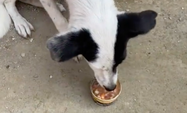 看到流浪狗吃得很香,走近才发现它啃的是一块木头 ...