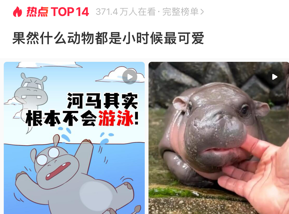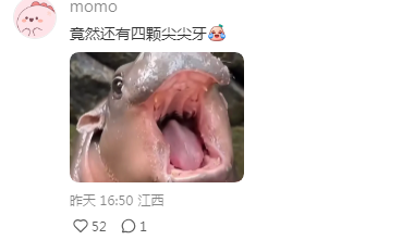 看起来大家都对这只小河马很喜爱呢,软萌可爱的动物是缓解不佳情绪最棒的解药,只要看到它们,心中的郁气、闷气以及不快乐也就会随之消失不见。