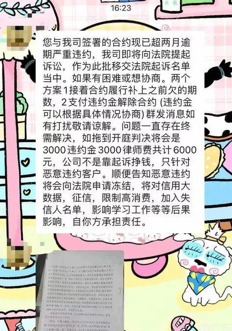“两个月没购买套餐,商家就让我交6000元的违约金,还说要起诉我,上征信,加入失信名单,影响后续找工作。”在不履行合同后,领养人收到了多条商家发来的短信和微信消息。领养人表示不止她一人收到了此类信息,“我们还拉了个维权群,都是遭受此合同困扰的消费者,大多数是年轻人。”