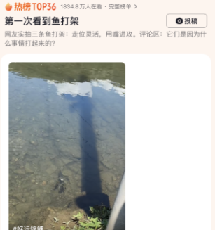 网友实拍三条鱼打架:走位灵活,用嘴进攻。评论区:它们是因为什么事情打起来的?