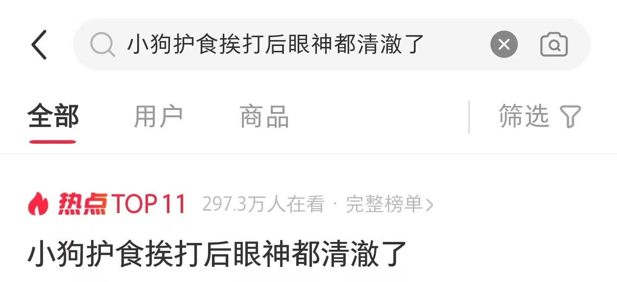 一博主在小红上分享自家狗狗护食的视频,因为第一次给它一块牛膝盖骨磨牙,看它啃了好久,主人想看看牛膝盖骨磨成啥样了,结果狗狗开始了护食,主人称这也是狗狗第一次护食,这一视频也引起了大家的关注,冲上了热搜。