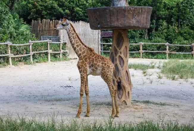 上海野生动物园介绍,这头长颈鹿宝宝出生于2024年3月1日,是长颈鹿妈妈“石榴”繁育的第2个男宝,保育员给它取名“石头”,寓意如顽石般坚强,更希望小家伙在园区快乐成长。