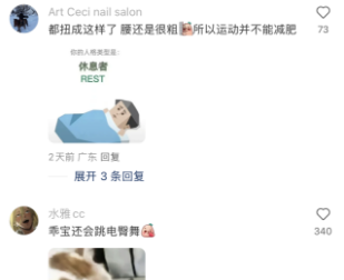 网友看了,忍不住评论:都扭成这样了,腰还是很粗 @所以运动并不能减肥;乖宝还会跳电臀舞。