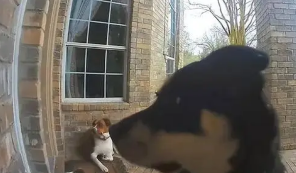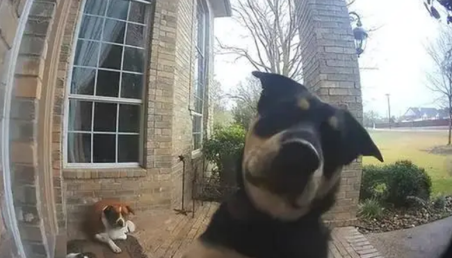 还有一铲屎官这天突然听到了门铃响,就打开了监控查看一下对方是谁,结果就看到了自家三只狗子...