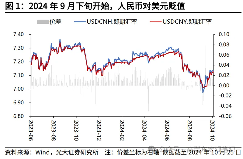近期大类资产的宏观交易主线从降息预期切换到再通胀,美元走强打压人民币。当前,由事件驱动的人民币贬值压力已经基本释放,后续人民币汇率波动率放大时点或在11月初。即便极端情况发生,人民币对美元贬值有“顶”,但可能会重现“三价背离”。考虑到国内政策的重要观测时点与美国大选结果出炉时点可能重合,通过内生动力对冲外部波动的可能性较大,从而为国内风险资产提供一定安全垫,也为人民币币值稳定提供一定支撑。