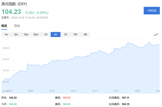 美元持稳,美元指数现跌0.09%报104.23%。