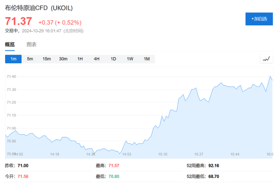国际油价昨日重挫后小幅反弹,美油、布油目前涨超0.5%。现货黄金高位震荡,“特朗普交易”如火如荼,比特币重返70000美元上方。
