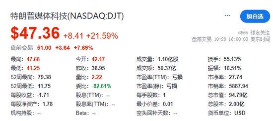 美国总统大选在即,特朗普媒体涨超7%。