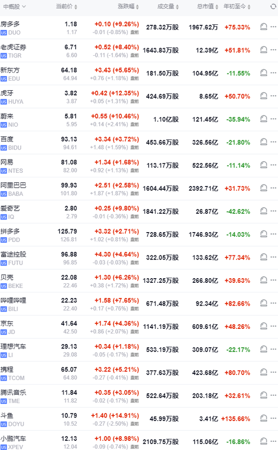 热门中概股盘前走高,京东、阿里巴巴涨近2%,哔哩哔哩、拼多多涨近1%。