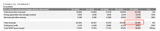 而特斯拉第三季度总营收为251.82亿美元(约合1793亿元),同比增长8%;净利润为21.67亿美元,同比增长17%。