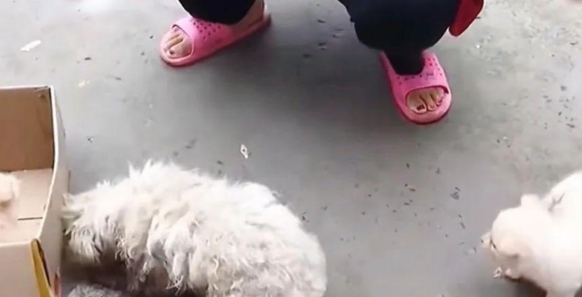流浪狗带着小奶狗乞讨食物时,被小姐姐收留