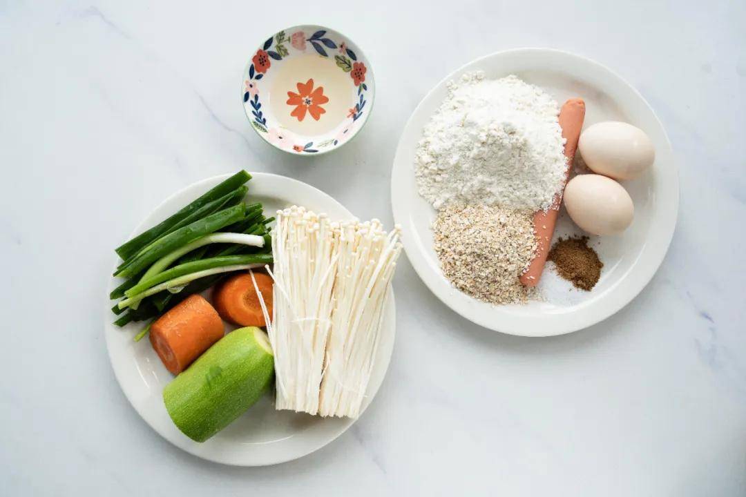 这里要说一下,你看到别人做的蔬菜饼,都是圆圆的一整个,你的却可能会完全不成形,这也别沮丧。