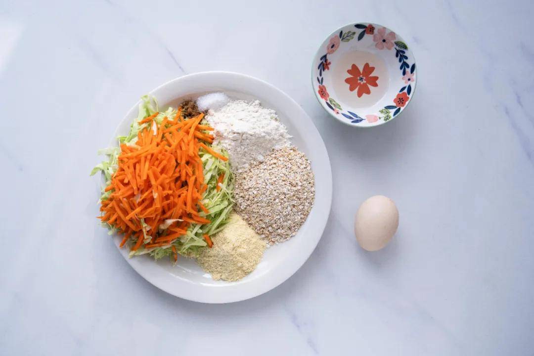 ,蔬菜加得多也影响成型,蔬菜如果不杀水还影响成型,但是充足的蔬菜和适量的粗粮有利于降体重,所以饼的外观就不要在意啦。