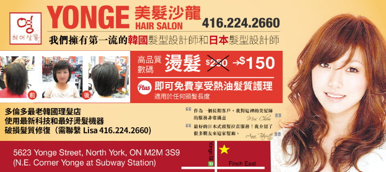YONGE美髮沙龍/美髮/美髮沙龍/頭髮設計 YONGE美髮沙龍 電話:(416)224-2660 地址:5623 Yonge St,North York,ON M2M 3S9