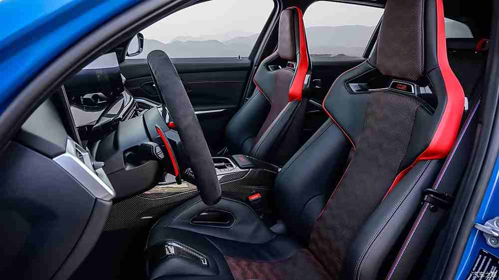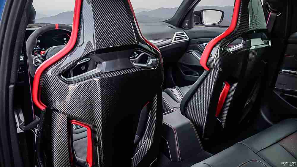内饰方面,新车减重的15kg主要也得益于采用碳纤维外壳的桶形座椅,这在普通版M3 Touring上是选装配置,但在CS 版上是标配。