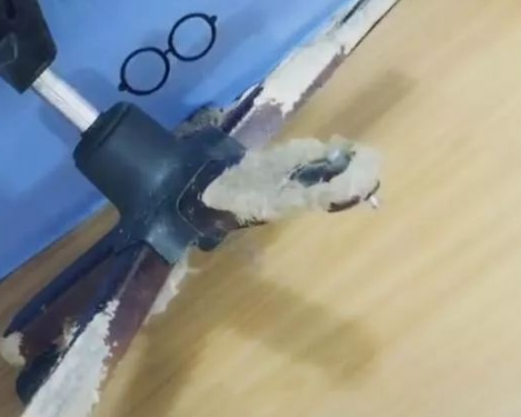 椅子腿上的小轱辘已经没有了!狗子:拆椅子我们是专业的,说拆椅子腿,绝对拆不了椅子后背!椅子,我只拆腿!!!