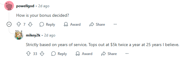 ,工作经验14年,顶薪$31.5/小时,4周带薪假期(明年5周),每年有2个$3.500的奖金。总薪资接近每年$7万。(注:奖金是根据工龄来计算的,25年经验的话可以拿到每年2个$5.000.)