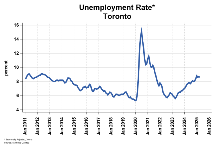 ·多伦多整体失业率为8.6%,相比3月略降0.1%,但实际可提供的全职岗位比上月骤减27.700个;