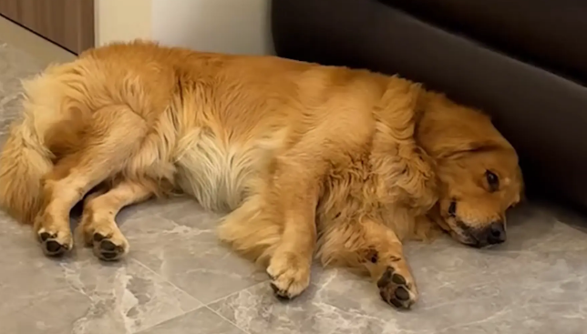当晚李女士推开家门,只见自家宝贝累瘫在玄关,听见动静勉强抬了下眼皮,连最爱的鸡肉干都提不起兴趣。