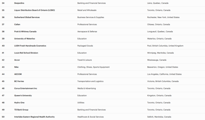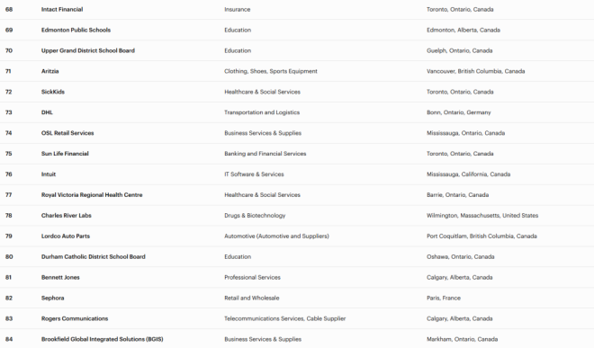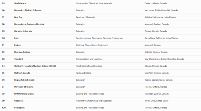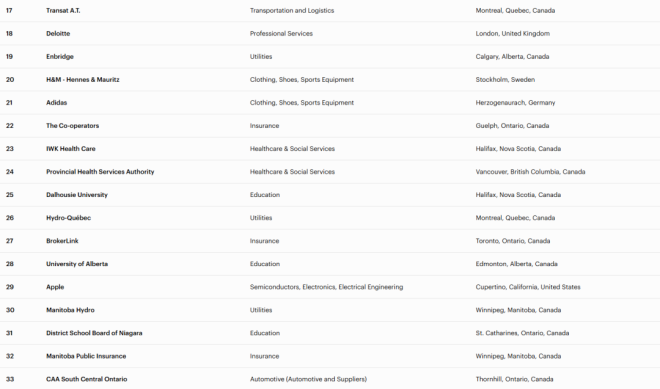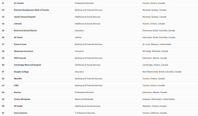为表彰这些企业,《福布斯》(Forbes)和调研机构Statista联手,评选出了2024年“加拿大最佳公司文化雇主榜”,共有200家公司上榜。
