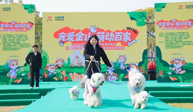 11月22日上午,“宠爱金山 萌动百家”——2025年金山区宠物友好文化季开幕式暨“文明待宠·宠物友好”特色典范项目发布活动在张堰镇百家村启幕。活动聚焦“宠物+文旅”,策划了“爱宠守护课堂”“稻田运动会”“萌宠市集”等多元体验环节,吸引众多市民游客赴约。