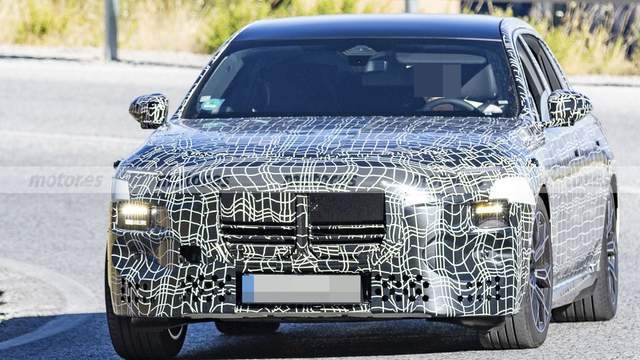 最新谍照显示,宝马7系的前脸设计保留了标志性的双肾格栅,但内部结构更加运动化,上半部分采用面板设计,下半部分则有两条细长的水平饰条。