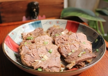将卤好的牛肉切片,按照自己的口味喜好浇上调味汁或者蘸着调味汁吃就可以了。