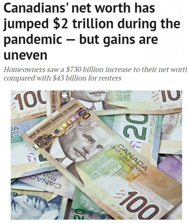 ——由于房价升值,加拿大房主的平均净资产增加了7,300亿元,而租房者的平均净资产则增加了430亿元。