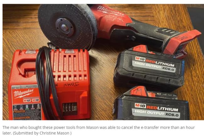 说,事情发生在去年9月,她当时在Kijiji上发了广告,想把自己手里闲置的一个无线角磨机、充电器和两块电池卖掉。