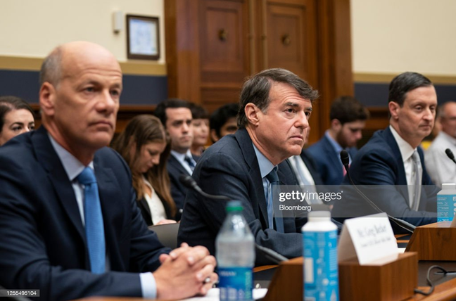 2023 年 5 月 17 日,硅谷银行前首席执行官格雷格•贝克尔(左起)、Signature Bank 前董事长兼联合创始人斯科特•谢伊和第一共和银行前首席执行官迈克尔•罗夫勒在华盛顿举行的众议院金融服务委员会听证会上(照片來源:Getty Images)
