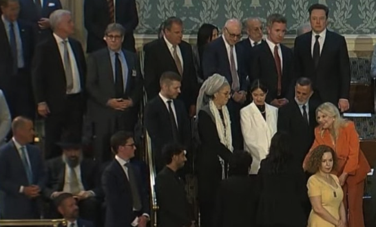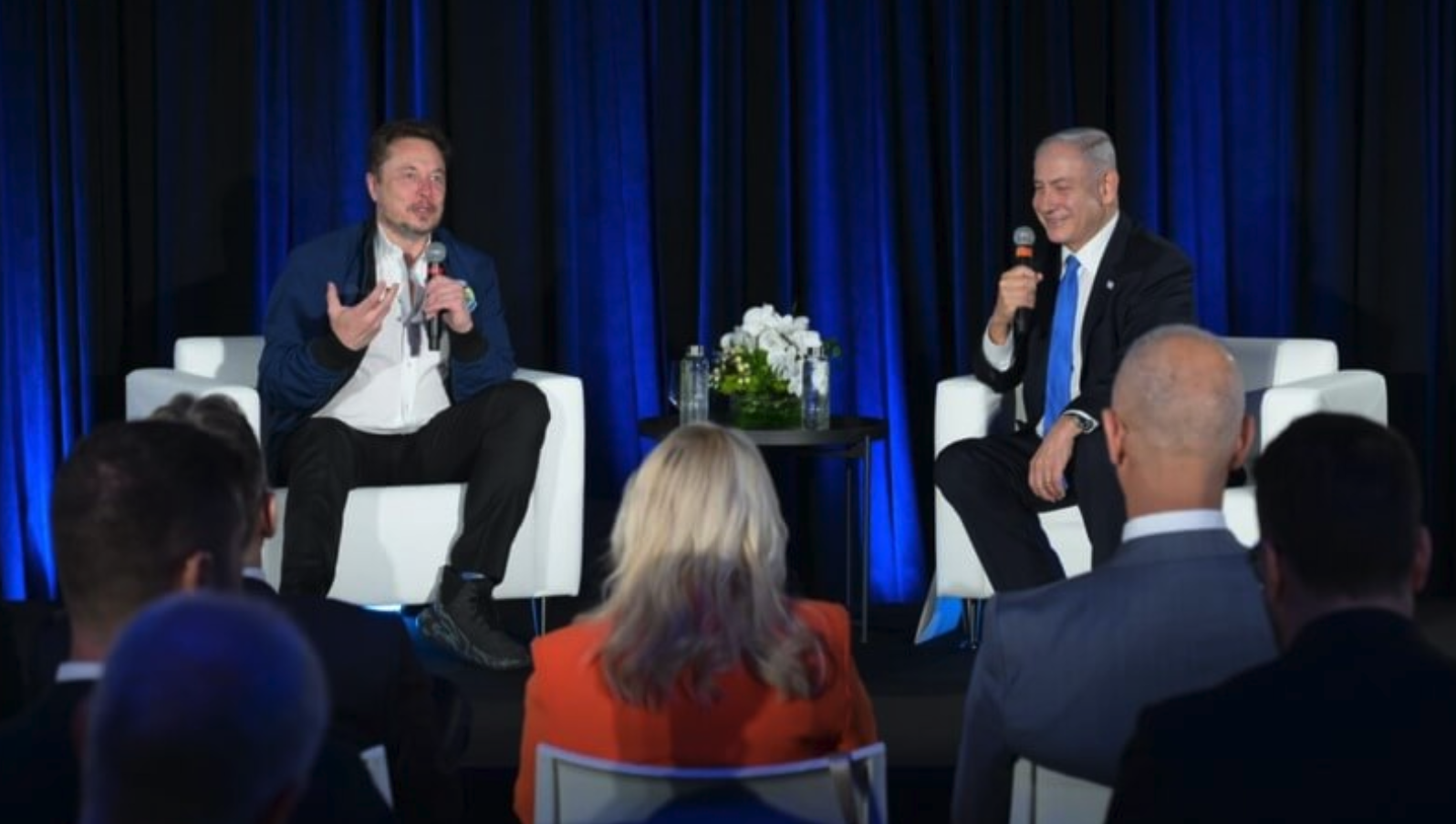现场画面显示,马斯克的位置就在内塔尼亚胡妻子萨拉后排,两人在演讲开始前还有过交流。