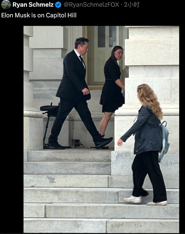 马斯克的身影,首先被福克斯电台的白宫记者Ryan Schmelz抓拍到,随后场内的记者团们迅速展开行动。