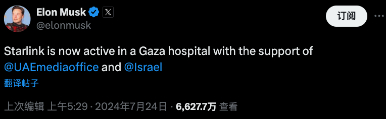 本周早些时候,马斯克宣布在阿联酋和以色列的帮助下,“星链”卫星互联网服务已在加沙地带的一家医院启动。