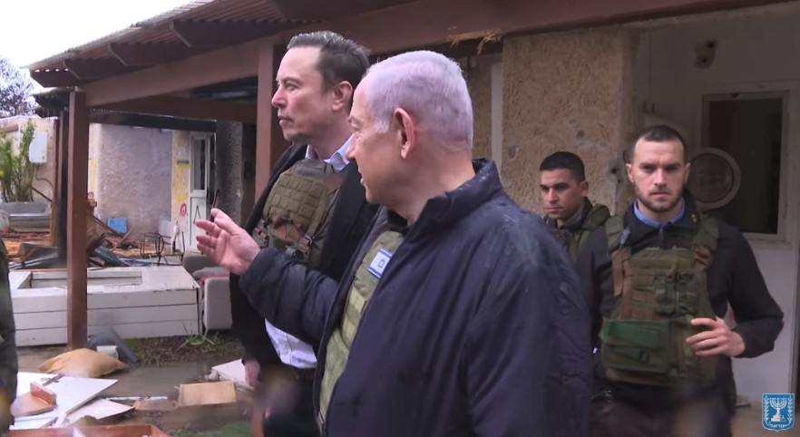 正因为有这层关系,去年底马斯克因为转发帖子陷入“反犹主义风波”时,得以第一时间访问以色列,在内塔尼亚胡的陪同下访问加沙以东3公里的卡法阿扎,亲自来看哈马斯袭击后的现场,并发文反击质疑者“行胜于言”。